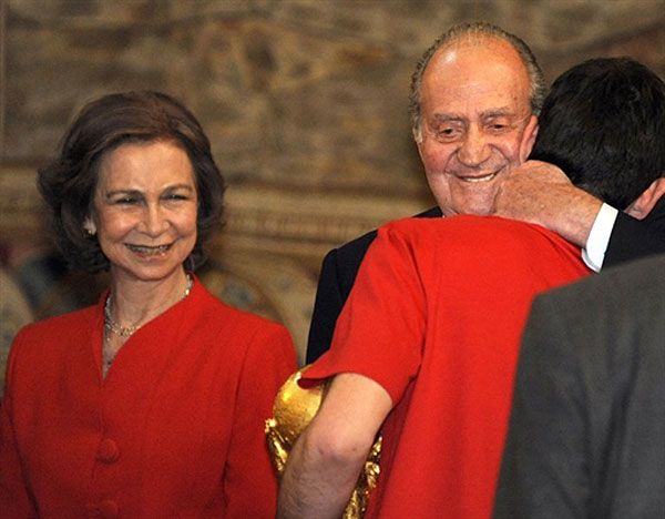 Король Іспанії Хуан карлос і королева Іспанії Софія вітають Ікера Касільяса. / © AFP