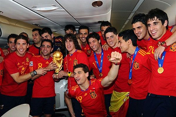 Гравців збірної Іспанії з перемогою привітала королівська родина, а король Іспанії Хуан Карлос особисто подякував кожному футболісту збірної. Після цього футболісти "червоної фурії" зустрілись з прем’єр-міністром Іспанії Хосе Луїсом Родрігесом Сапатеро. Нові чемпіони світу також проїхались вулицями Мадрида у відкритому автобусі, де їх вітали більше мільйона людей.
