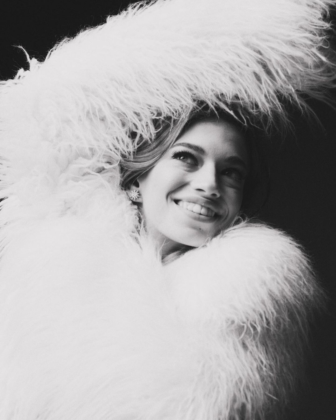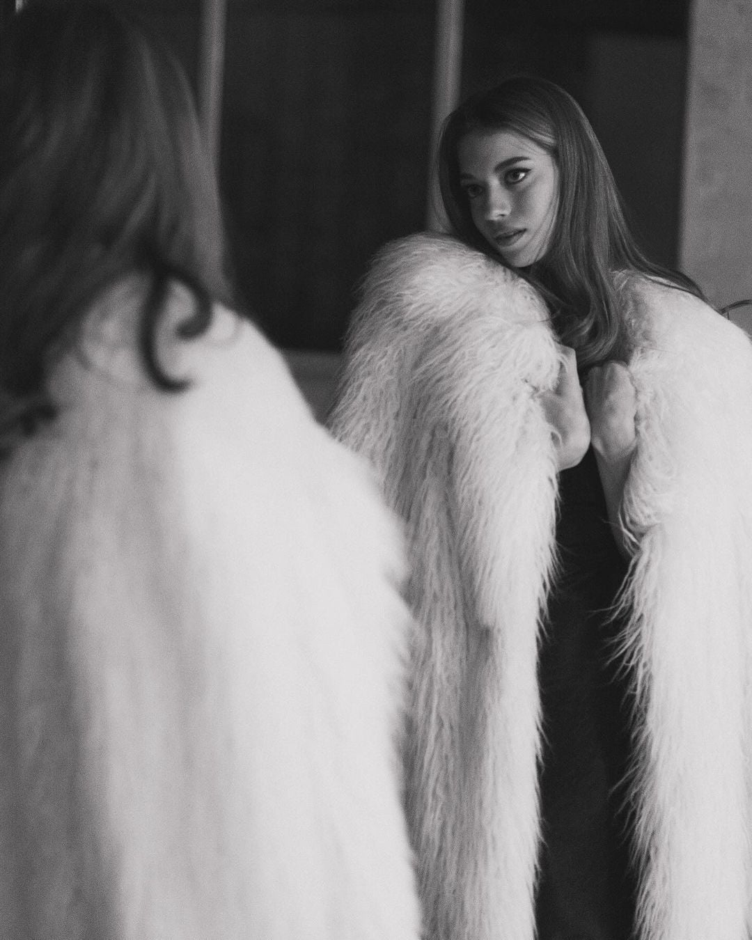 Потім донька знаменитості змінила свій образ. Так, на деяких знімках Кіперман показалася у стриманій довгій сукні та білій пухнастій шубі.