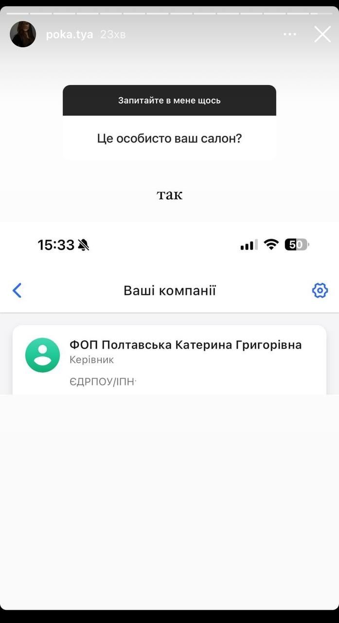 Тим часом шанувальники поцікавилися, на кого ж зареєстрований бізнес. Обраниця Остапчука не стала приховувати, а відповіла, що салон – це повністю її власність.