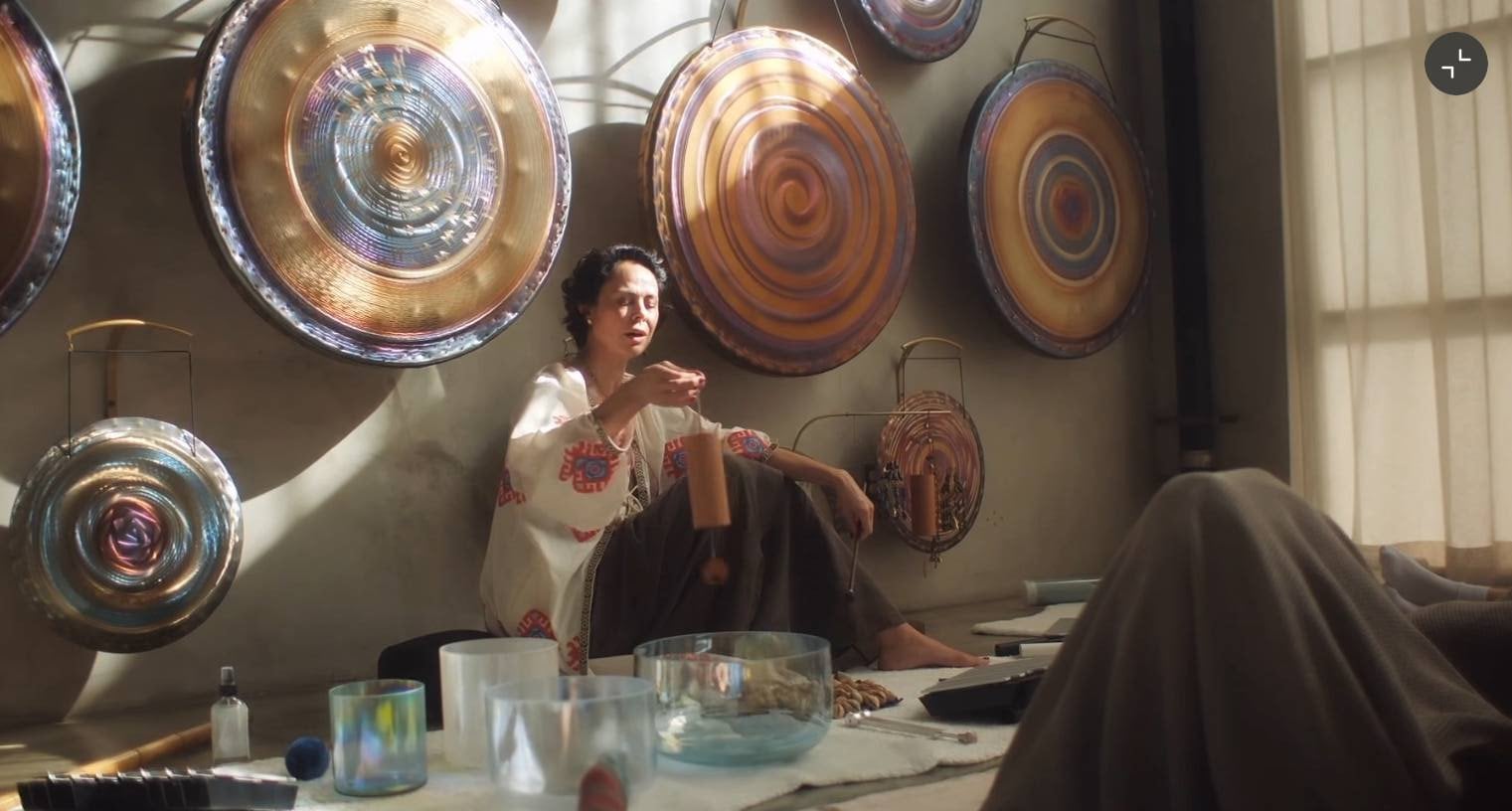 Врешті, Наталія Єгорова вже й провела сеанс звукотерапії. Знаменитість створювала музику на інструментах, звук яких заспокоює, а також тихо та ніжно співала. Тим часом присутні занурювались в атмосферу, медитували та насолоджувалися відчуттям спокою.