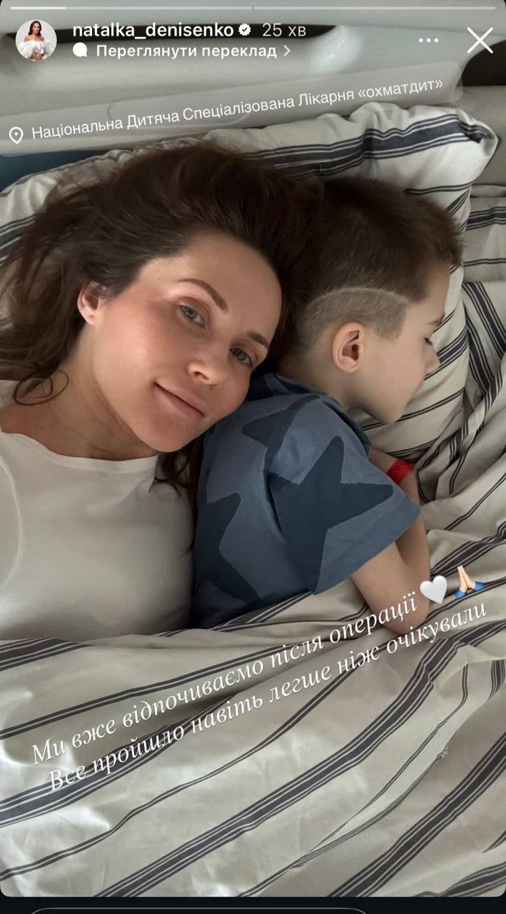 «Ми вже відпочиваємо після операції. Все минуло навіть легше ніж очікували. Які чудові лікарі в «Охмадиті»! Хочу подякувати всім, хто тут працює. Всі спокійні, працюють злагоджено, з добротою і любовʼю! І це державна лікарня! Згадую в своєму дитинстві, і все було не так красиво і по-доброму. Анестезіолог вів Андрійка на операцію, налаштував приємною розмовою, сказав що зараз подихають інгаляцією з ароматом полуниці або шоколаду», - поділилася акторка в Instagram.