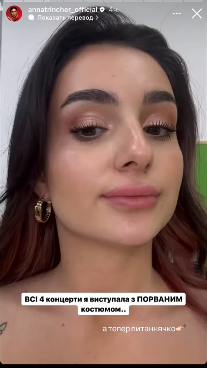 Співачка та блогерка Анна Трінчер вийшла на сцену у порваному вбранні та відіграла так чотири концерти.