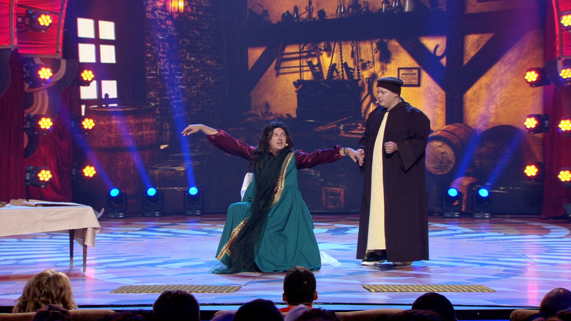 Глядачі побачать Потапа в образі Архімеда, Лірника, який косить під Ейнштейна, а Юрія Горбунова і зовсім в жіночій сукні, адже йому дісталася роль Мони Лізи. Найнесподіванішим виявилося перевтілення Євгена Кошового в Стіва Джобса, а одним з найяскравіших номерів вечора була мініатюра команди "Стоянівка" про страту на електричному стільці.