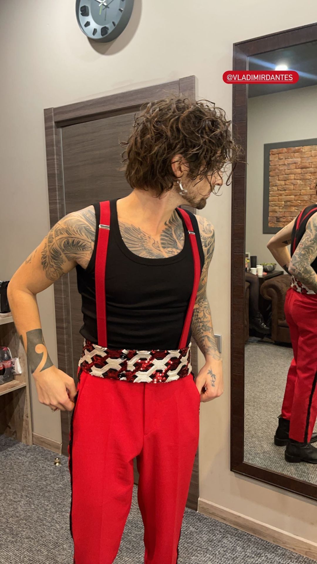 Перед публікою виконавець з'явився у доволі епатажному образі – у яскраво-червоних штанях із підтяжками, чоботах на підборах, чорній футболці та укороченому жакеті. Володимир зробив яскравий макіяж та був у сережках, які йому подарувала мама перед концертом.