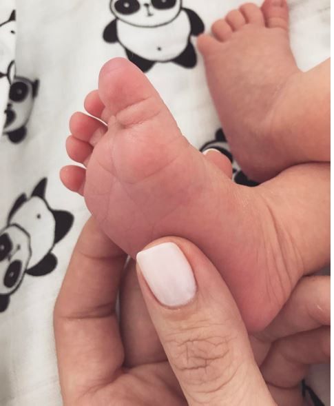 На світлині обраниця рокера тримає крихітну ніжку малюка. Свій допис вона супроводила лаконічним сердечком.