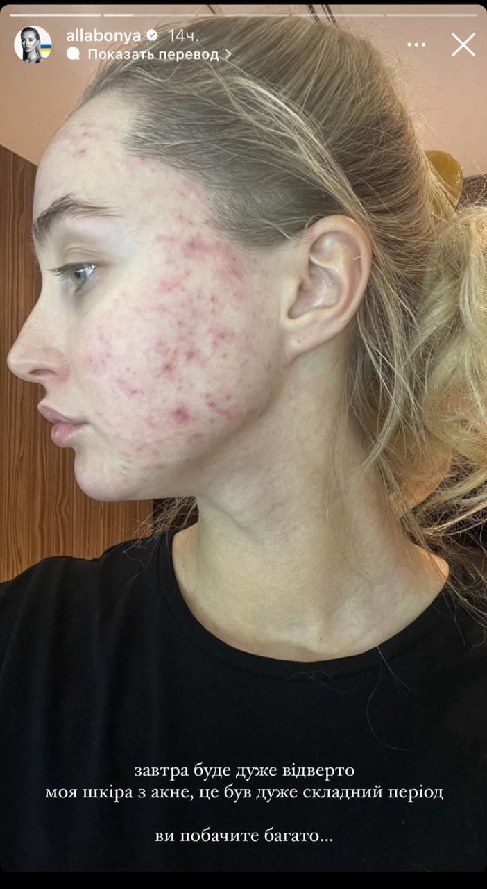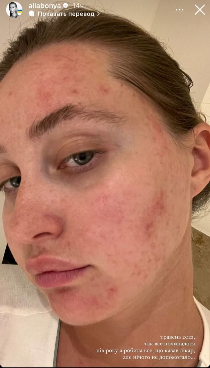 "Моя шкіра з акне, це був дуже складний період. Ви побачите багато… Травень 2022 року, так все починалося. Пів року я робила все, що казав лікар, але нічого не допомагало…", - поділилася Барановська.