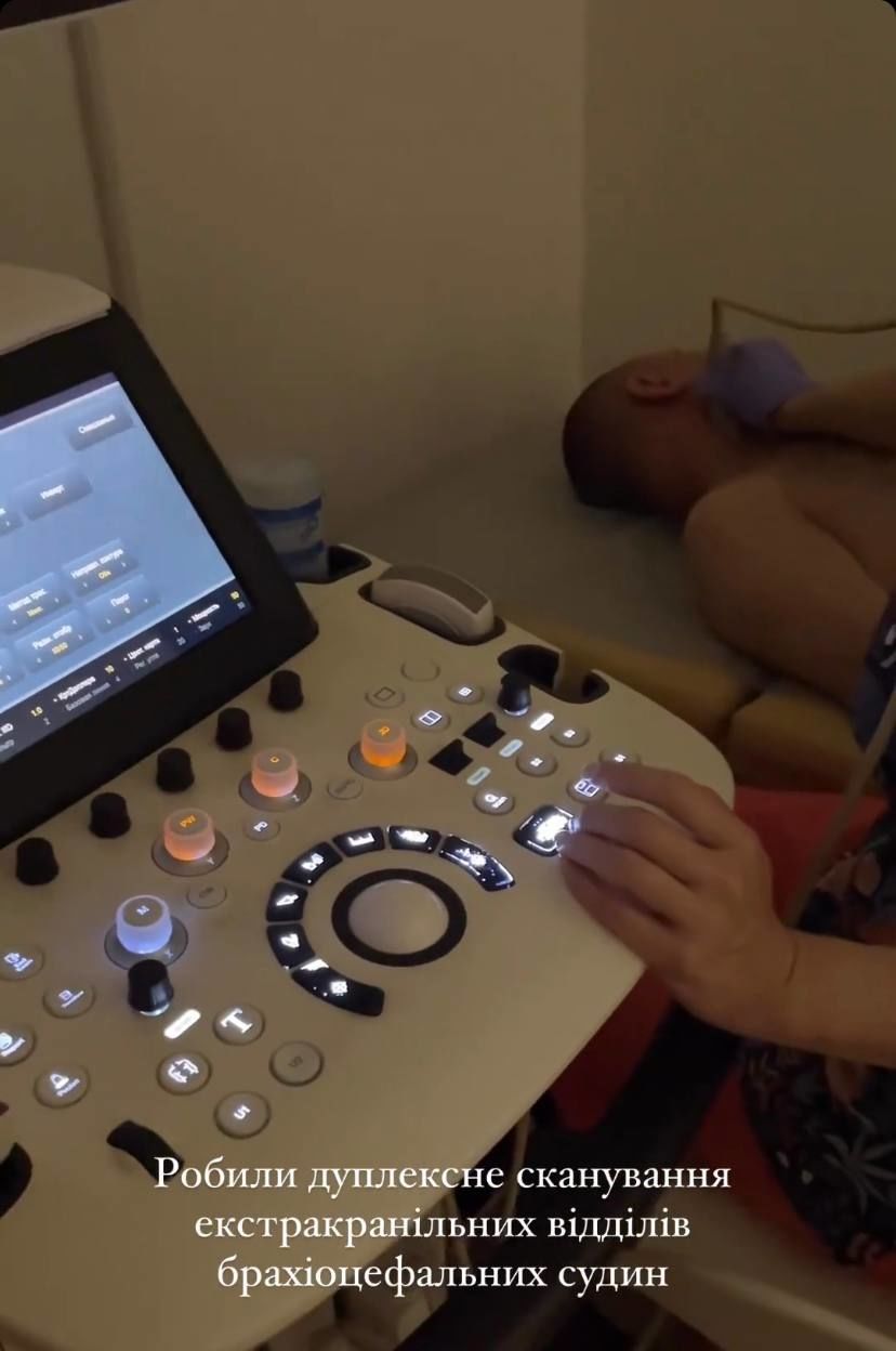 "Робили дуплексне сканування екстракраніальних відділів брахіоцефальних судин. Не пив каву зранку, не курив. А якісь атеросклеротичні бляшки має", - поділилася Катерина.