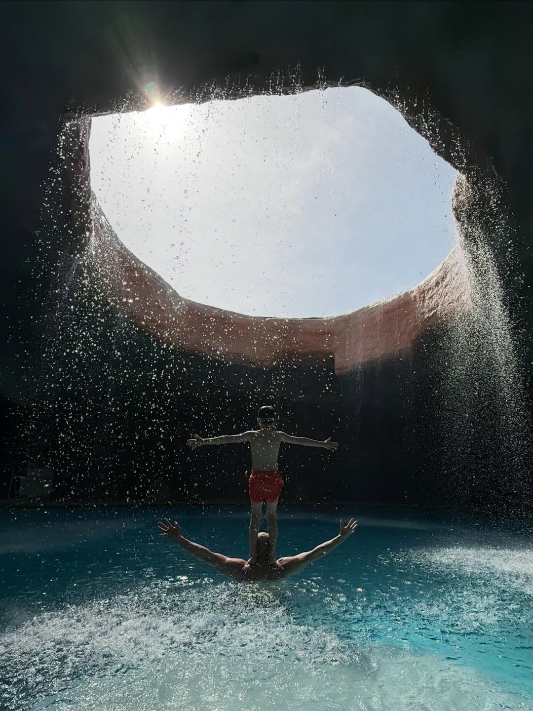 Зірка Голлівуду вже й показав, як проводить час із дітьми. Вочевидь, вони полюбляють плавати, тож проводили час у басейні, розташованому в печері. Місцина ця у доволі безлюдному місці, тому сімейство змогло не лише порозважатися, а й насолодитися приватністю.