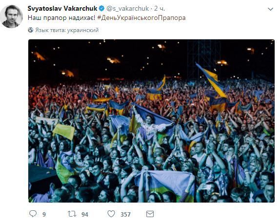 "З Днем прапора! Слава Україні!" - додав у підписі зірка.