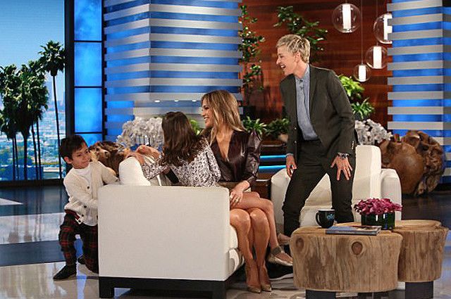 Разом з собою співачка взяла підрослих дітей – дев'ятирічних двійнят Макса і Емму. І якщо донька Джей Ло спокійно розмістилася на колінах знаменитої мами, то маленький Макс вирішив пограти у схованки в студії. Спочатку він ховався за кріслом, у якому сиділа Дженніфер, а потім заліз у коробку, яка стояла поряд з Еллен.