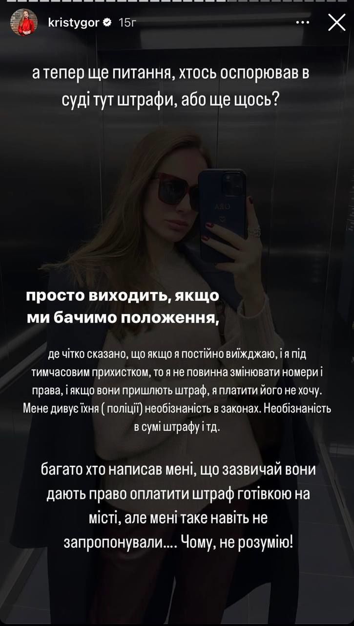 Колишня обраниця шоумена виїхала на авто у власних справах. Неочікувано Христину зупинила місцева поліція, хоча правила дорожнього руху вона не порушувала. Блогерку попросили показати документи, а також речі, які мають бути в авто.