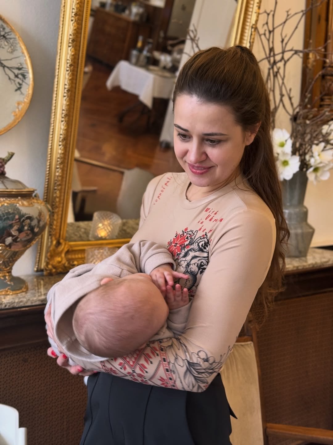 «Сьогодні синочку 10 місяців! Наш Левчик дуже активний, має два нижні зубчики, а верхні вже виглядають і скоро з’являться. Ще не ходить сам, але впевнено крокує біля опори. Перші самостійні кроки вже зовсім близько! Любимо тебе безмежно, наш маленький досліднику», — зворушливо написала зіркова мама.
