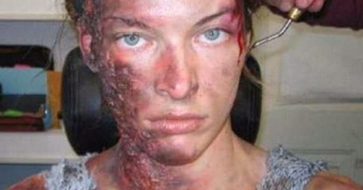 Експерименти тривають: Йовович вразила фанів "обгорілим" та побитим обличчям