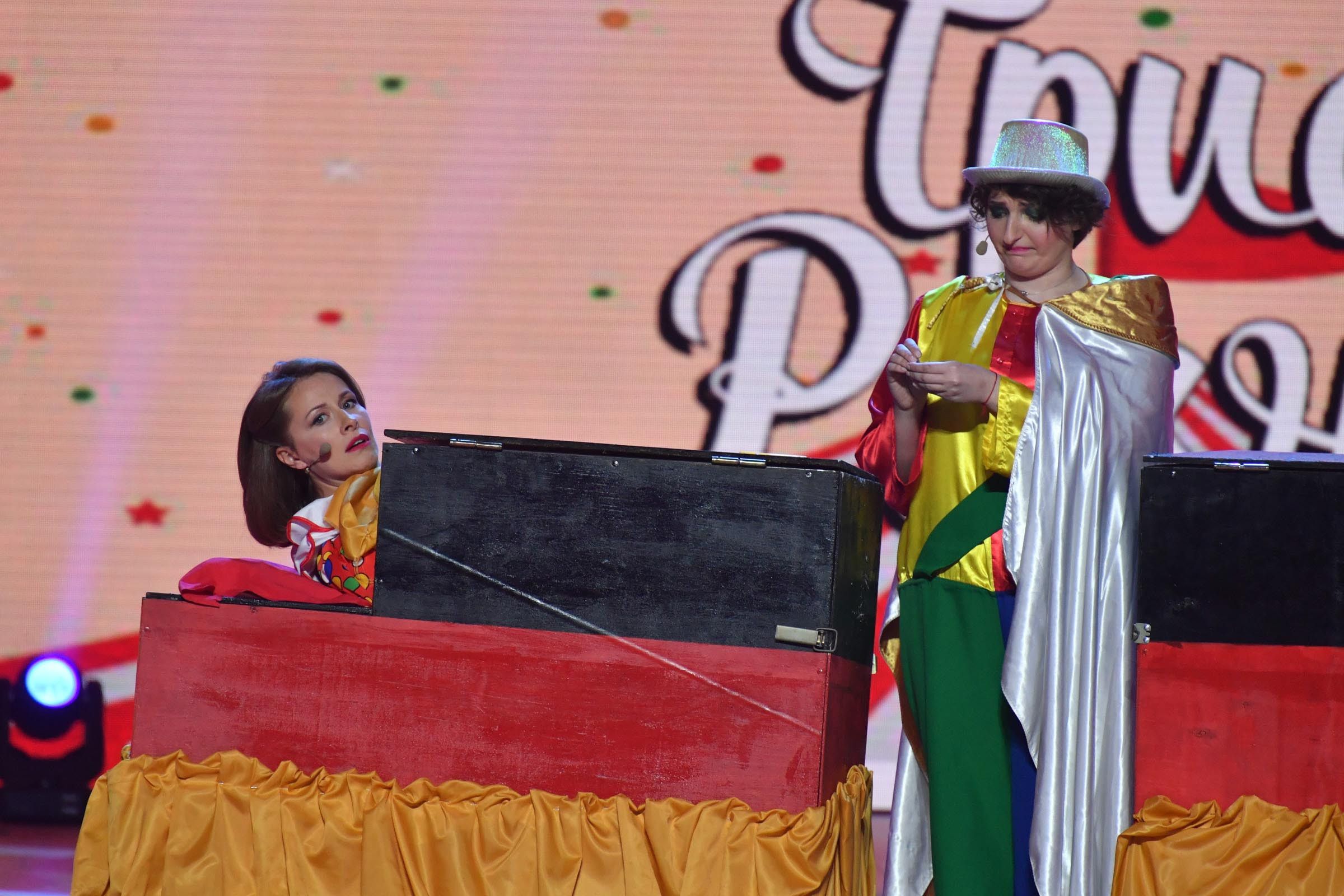 "Тріо різні і ведуча" влаштували на сцені справжнє циркове шоу, для чого навіть "розрізали" навпіл свого тренера Олену Кравець.