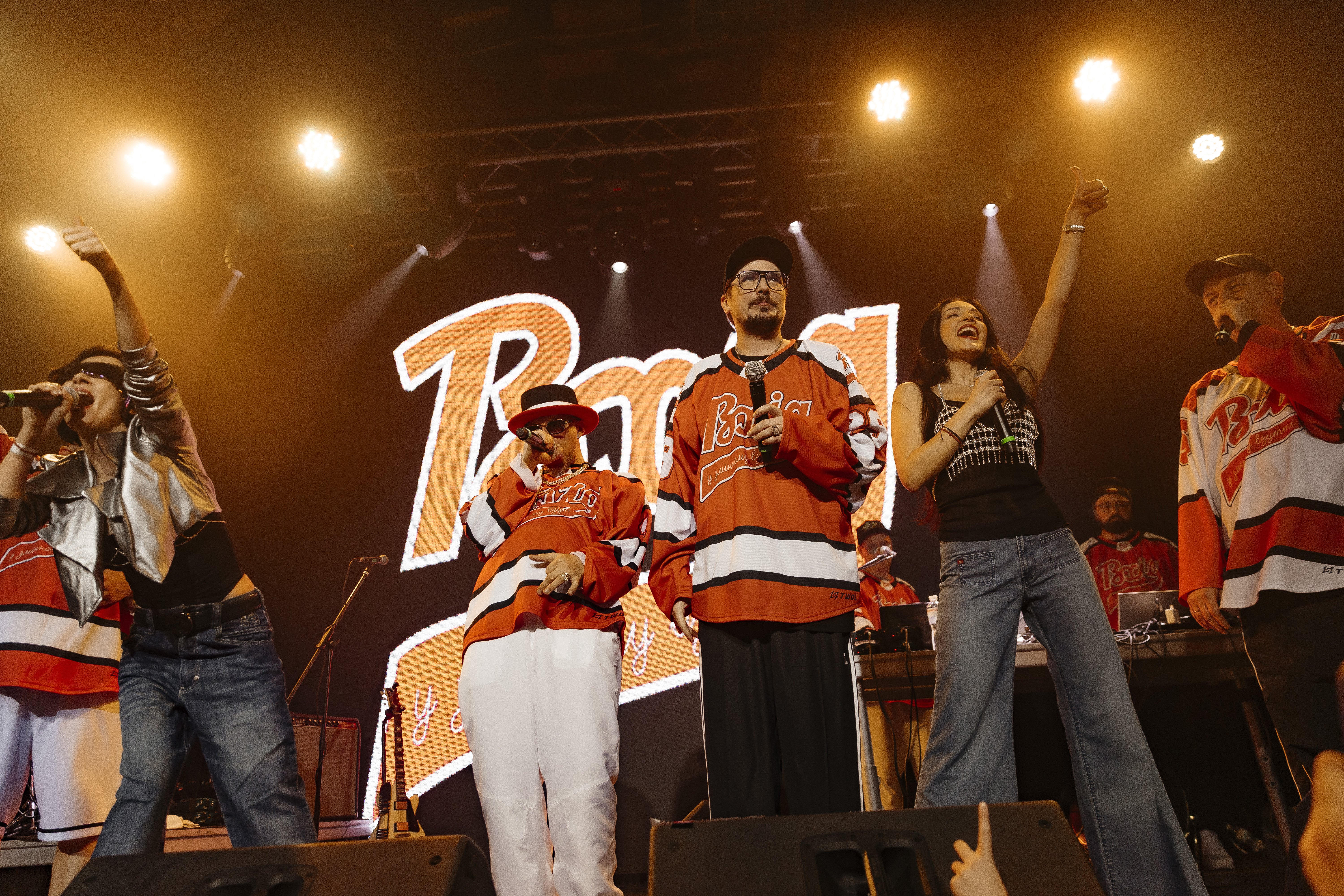 Вечір перетворився на потужний культурний маніфест, де на одній сцені об’єдналися три покоління артистів — від легенд 90-х до представників нової школи. Першими на сцені з’явилися хлопці з гурту Схимаді (Cxuma.dizzy), задавши ритм та енергію, які тримали зал до самого фіналу. Після них публіку зустрів Марк Куцевалов — у своєму впізнаваному стилі він оголосив найочікуваніший момент вечора: вихід оновленого складу ВУЗВ.