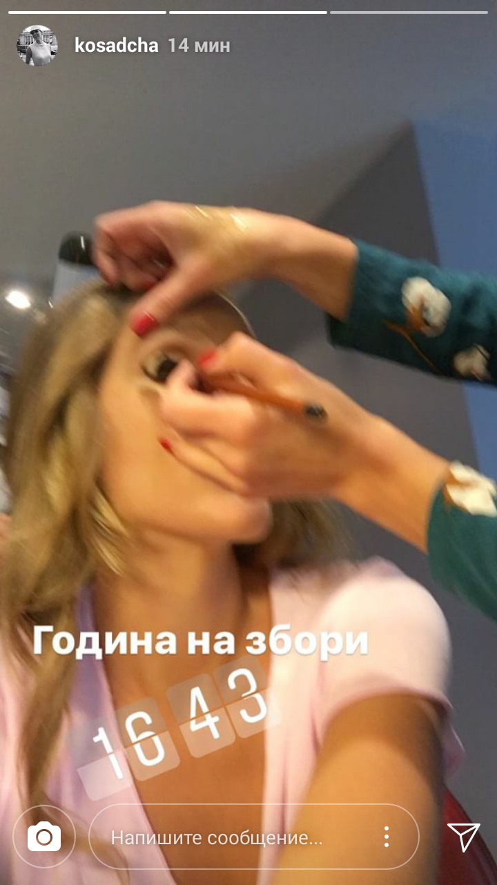Крім того, телеведуча оприлюднила коротких фрагмент своїх зборів, а саме – процес нанесення макіяжу.