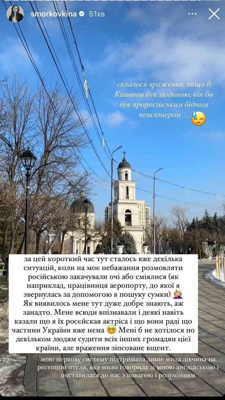 Враження у співачки про Кишинів були не надто приємні, адже вона там зустріла проросійських місцевих. Зокрема, знаменитість висміяли за відмову розмовляти російською, а також назвали акторкою з РФ. Ба більше, Анна говорить, що деякі взагалі раділи окупації України.