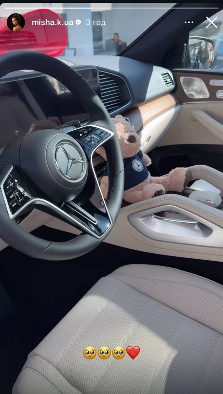 Вибором зірки став преміальний кросовер Mercedes-Benz GLE 450, вартість якого оцінюють приблизно у п’ять мільйонів гривень. Радісною подією артистка поділилася в Instagram, показавши момент отримання авто в салоні. Білий автомобіль урочисто прикрасили великим червоним бантом і в салоні розмістили плюшевого ведмедика для більших емоцій.