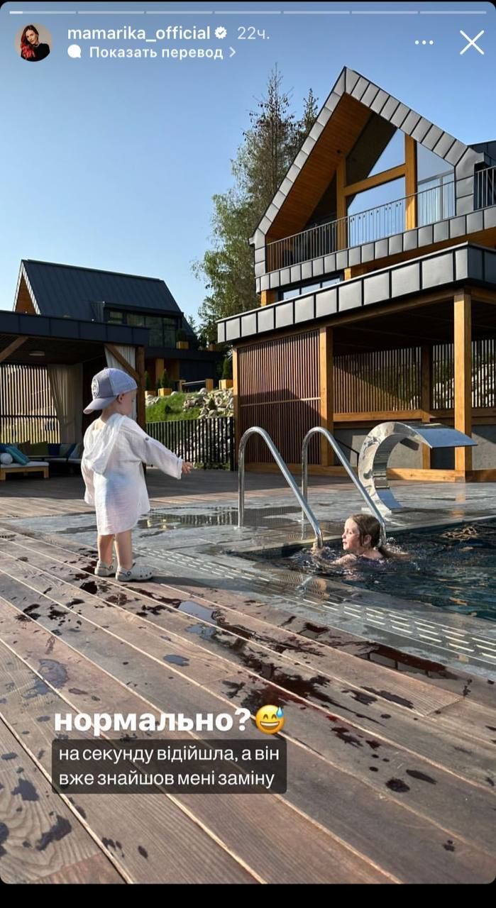 Як поділилася MamaRika, вона відпочивала біля басейну, адже нарешті була тепла та сонячна погода.