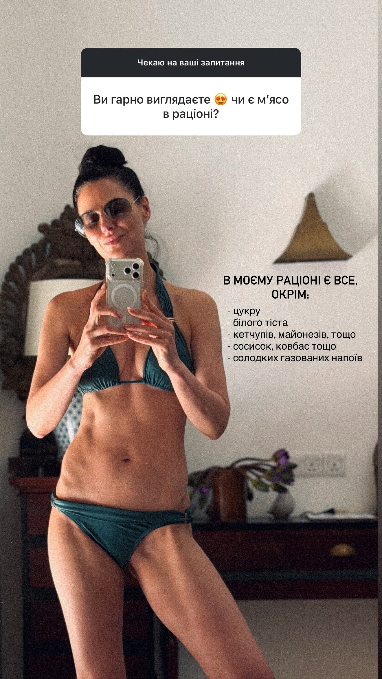 Телеведуча не вперше говорить про збалансоване харчування та дисципліну як основу гарного самопочуття. Водночас вона наголошує, що не підтримує крайнощів і радикальних дієт, обираючи усвідомлений підхід до їжі та регулярну фізичну активність.