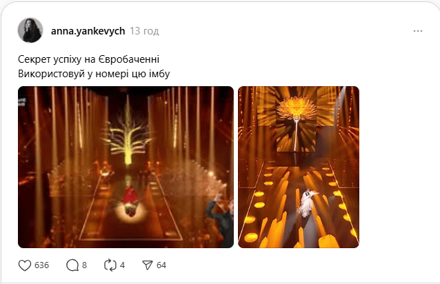 А от LELÉKA взагалі використала в номері безпрограшний варіант. Річ у тім, що деякі елементи у виступі артистки нагадували ті, які були свого часу в Джамали, коли та брала участь у "Євробаченні-2016" та перемогла.