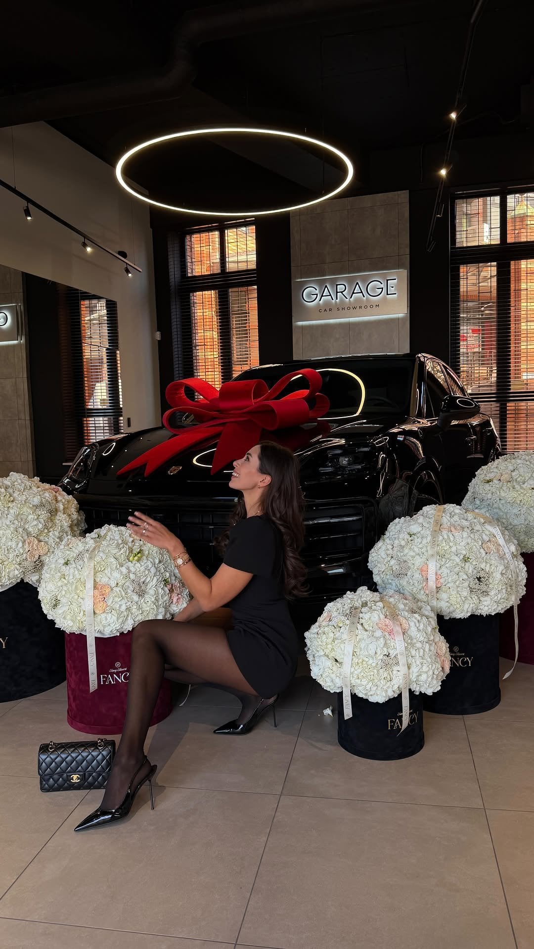 Також Анна Неплях показала, як у салоні забирала авто. Porsche було прикрашене чималим червоним бантом, а довкола бути розміщені розкішні букети квітів.