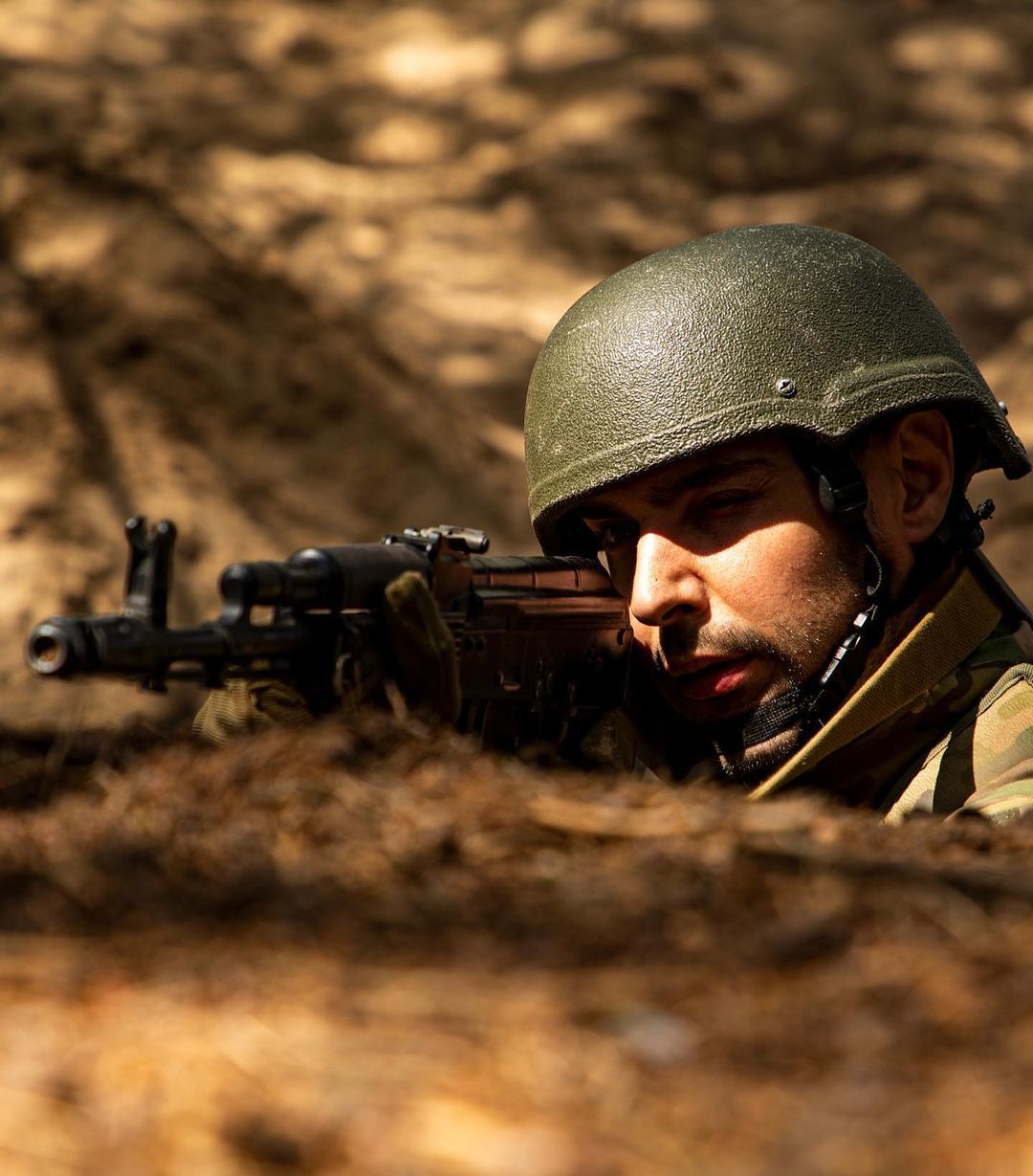 На сторінці в Instagram виконавець розмістив знімки, зроблені під час його навчань на полігоні. На знімках Козловський зображений у формі, касці та з автоматом у руках.