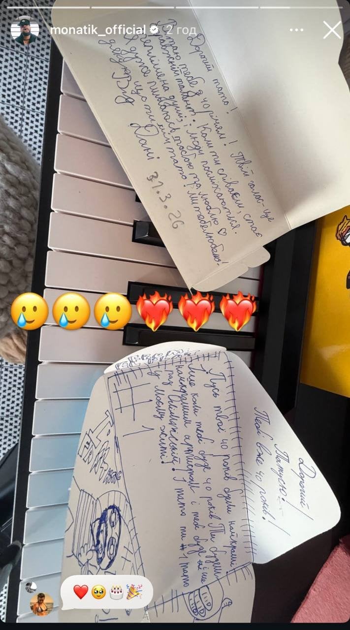 До того ж сам зірка у сториз показав, як його привітали сини. Данило і Платон підготували татові особливі листівки, на яких самостійно написали побажання. І це неабияк зворушило іменинника.