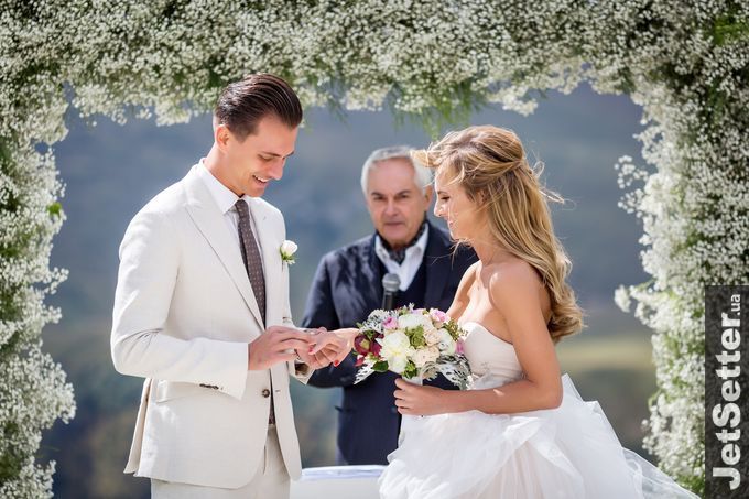 В Інтернеті з'явилися нові світлини з казкового весілля телеведучого Олександра Скічка та власниці гранд-готелю Fairmont Єлизавети Юрушевої.
