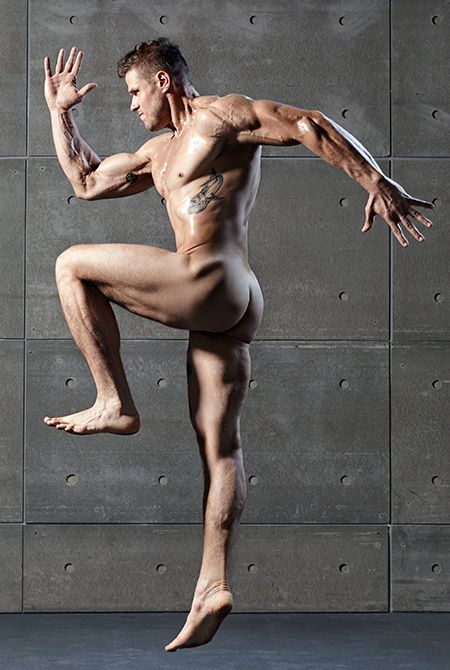 На світлинах Володимир спочатку постає в одязі для занять фітнесом, а потім з'являється у таких же позах, тільки у чому мати народила.