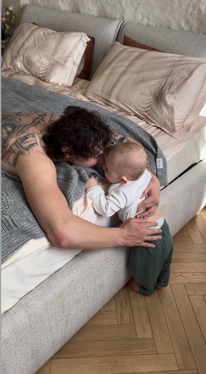 Вже зовсім скоро малюкові виповниться 10 місяців, а поки його батько вирішив показати теплі моменти батьківства. У своєму Instagram Дмитро Бабчук опублікував серію ніжних кадрів, де грається з сином, обіймає його та засипає поцілунками. Чи не вперше шанувальники змогли більш чітко розгледіти обличчя малюка, якого Леся показує здебільшого спиною.