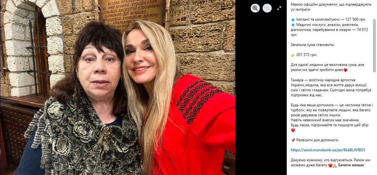 Акторка також наголосила, що сума за лікування виявилася доволі великою. Імпланти та всі необхідні комплектувальні коштували понад 127 тисяч гривень. Ще понад 74 тисячі пішли на медичні послуги — аналізи, анестезію, обстеження та перебування в лікарні. Загалом сума лікування перевищила 200 тисяч гривень.