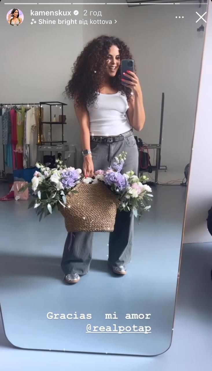 Так, подружжя часто перебуває у тривалій розлуці, адже постійно працює у різних країнах. Втім, Потап знайшов вихід і потішив кохану розкішним букетом квітів у плетеній сумці. У цей момент співачка готувалася до знімань разом з візажистом і перукарем. Тож, доставка квітів неабияк покращила їй настрій. Щоправда, де саме артистка перебуває зараз, вона розкривати не стала. До слова, у фотоблогу зірка публічно звернулася до Потапа і подякувала йому.
