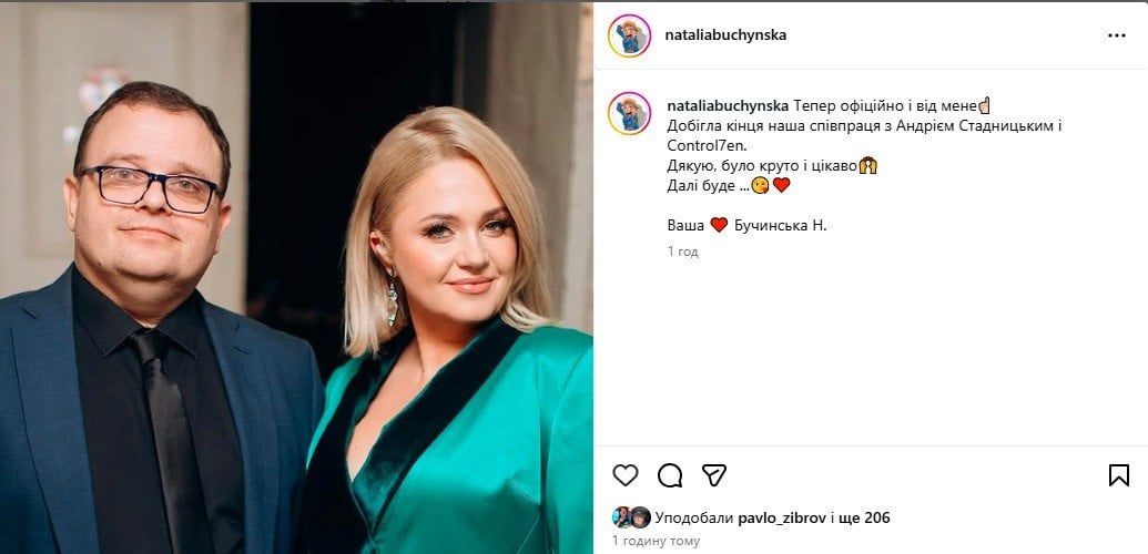 «Добігла кінця наша співпраця з Андрієм Стадницьким і Control7en. Дякую, було круто і цікаво. Далі буде», — написала виконавиця.