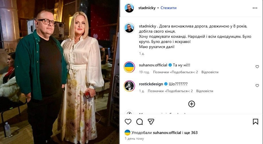 Схожу заяву зробив в Instagram і сам Стадницький. У дописі він зазначив, що далі планує рухатися до нових цілей. І також висловив вдячність усім, хто був поруч.