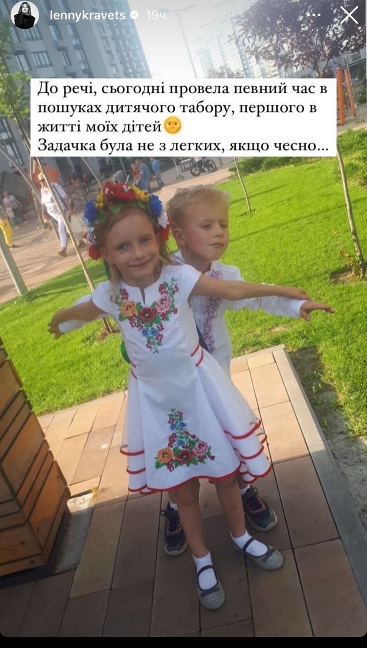 Знімки з сином Іваном та донькою Катериною знаменитість поділилася в Instagram-stories. Перед об'єктивом фотокамери дітлахи позували в українському вбранні. Катерина була одягнена у вишиту сукню та віночок, а Іван позував у вишиванці.