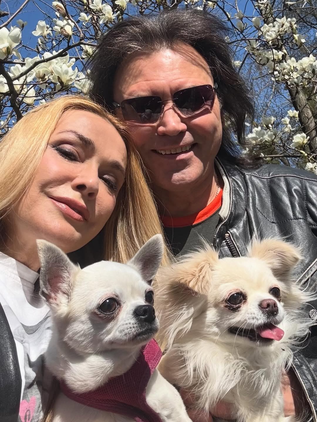 Компанію закоханим також склали їхні домашні улюбленці — чіхуахуа Джессіка та Жасмін, які теж вирушили з ними на весняну прогулянку.