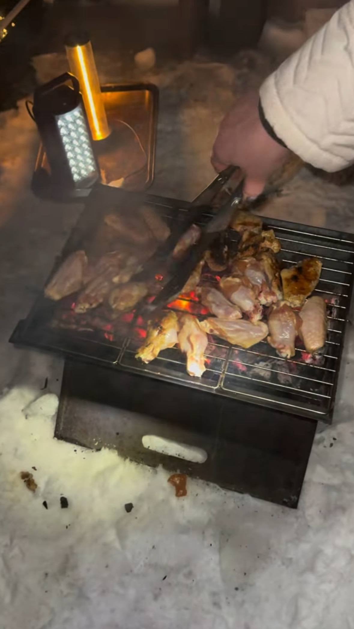 Під час блекауту зіркова пара вирішила не залишатися без вечері й влаштувала справжню імпровізовану трапезу просто на даху будинку. Як зізналася акторка, у квартирі на той момент не було ані електрики, ані води, тож готувати вдома було неможливо. Втім, подружжя не розгубилося й разом із сусідами винесло мангал на дах. Там компанія просто на снігу посмажила м’ясо, спілкувалася, співала пісні і підтримувала одне одного попри темряву навколо.
