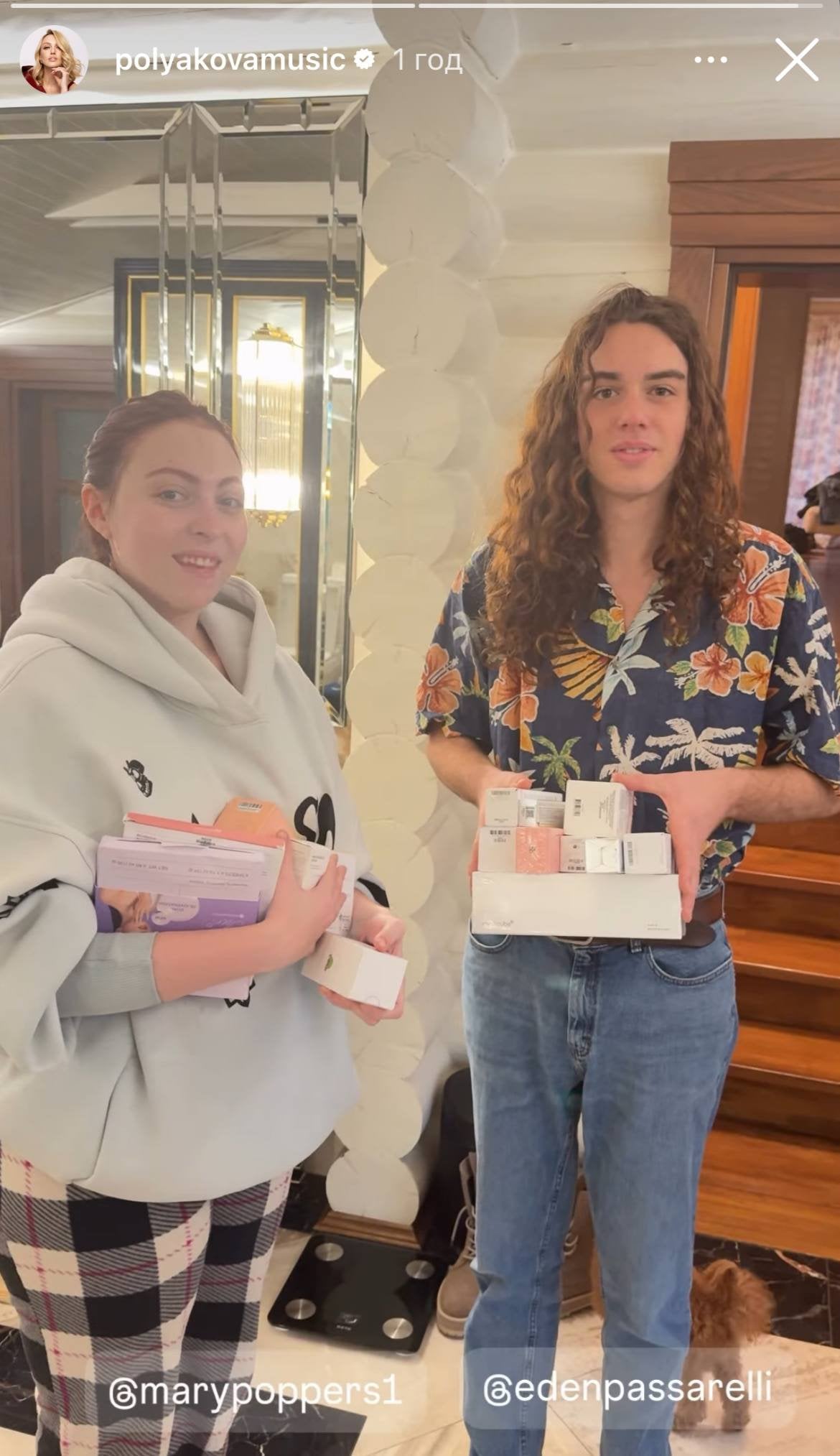 Реакція Олі Полякової на зятя в будинку не забарилася. А щойно щаслива співачка побачила у руках подарунки — зраділа ще більше. Вона не стала показувати, що ж це було. Але, судячи з вигляду, у коробках можуть бути косметичні засоби. І авжеж не обійшлося без гумору артистки. За такий сюрприз вона пообіцяла погодувати пару, чим насмішила обох.