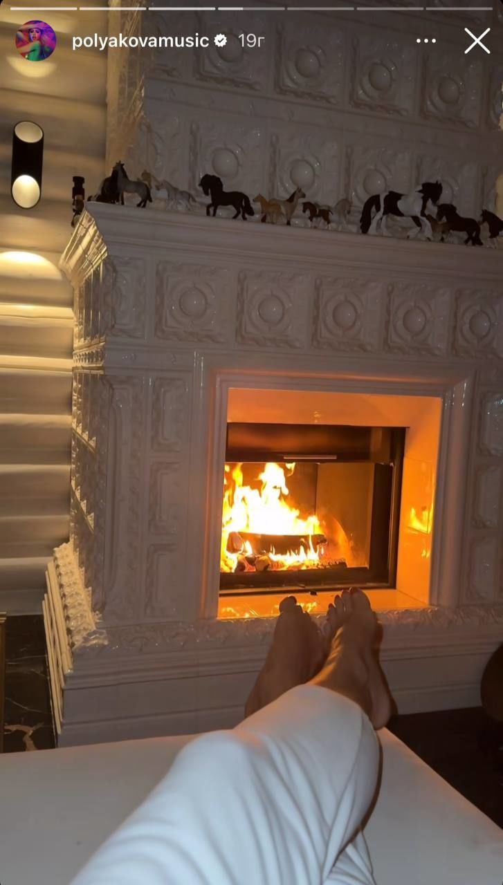 Після такої СПА-процедури, Полякова переодягнулася й погрілася поблизу каміна у будинку. А потім влаштувала собі чайну церемонію на тлі того, як розгоралися дрова.