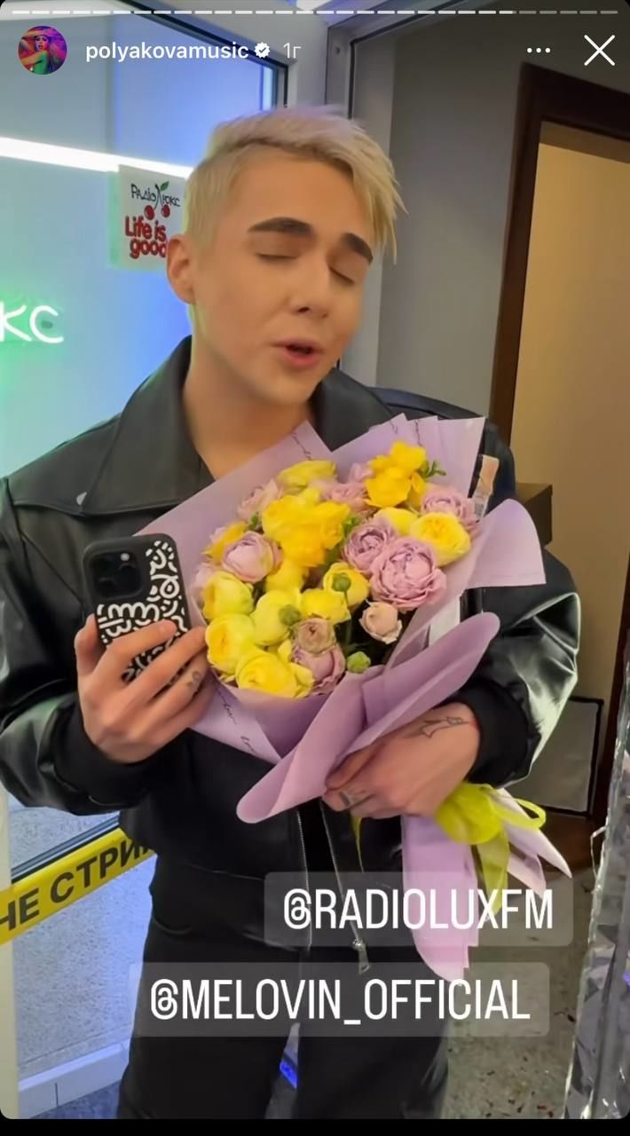 Також артист MELOVIN приїхав на радіо, подарував Олі букет, пляшку ігристого та заспівав Happy Birthday to you.