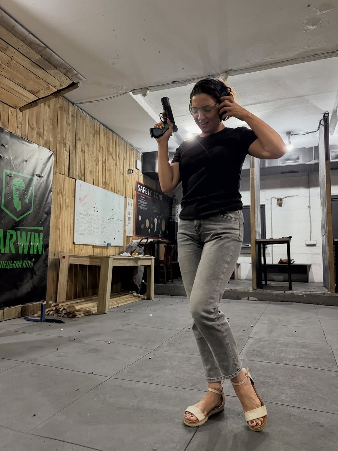 40-річна артистка несподівано відкрила для себе нову сторону — і показала її публічно. У соцмережах вона поділилася кадрами з тиру, де позує зі зброєю в руках. Образ — максимально простий: джинси, чорна футболка та захисні навушники. Але увагу привернув зовсім не лук, а впевненість і результат.