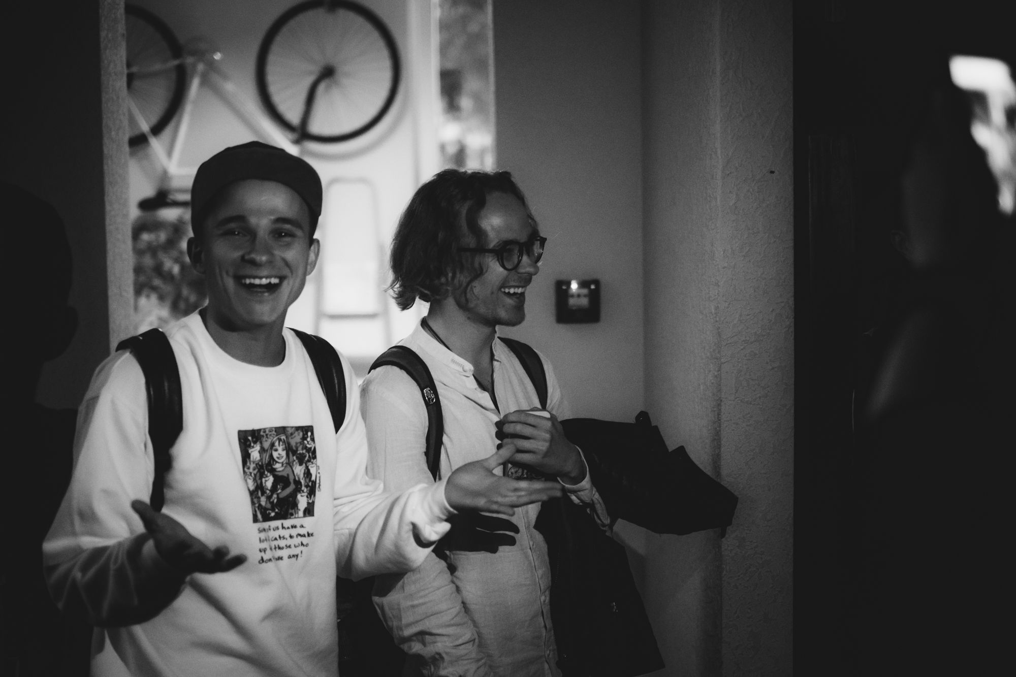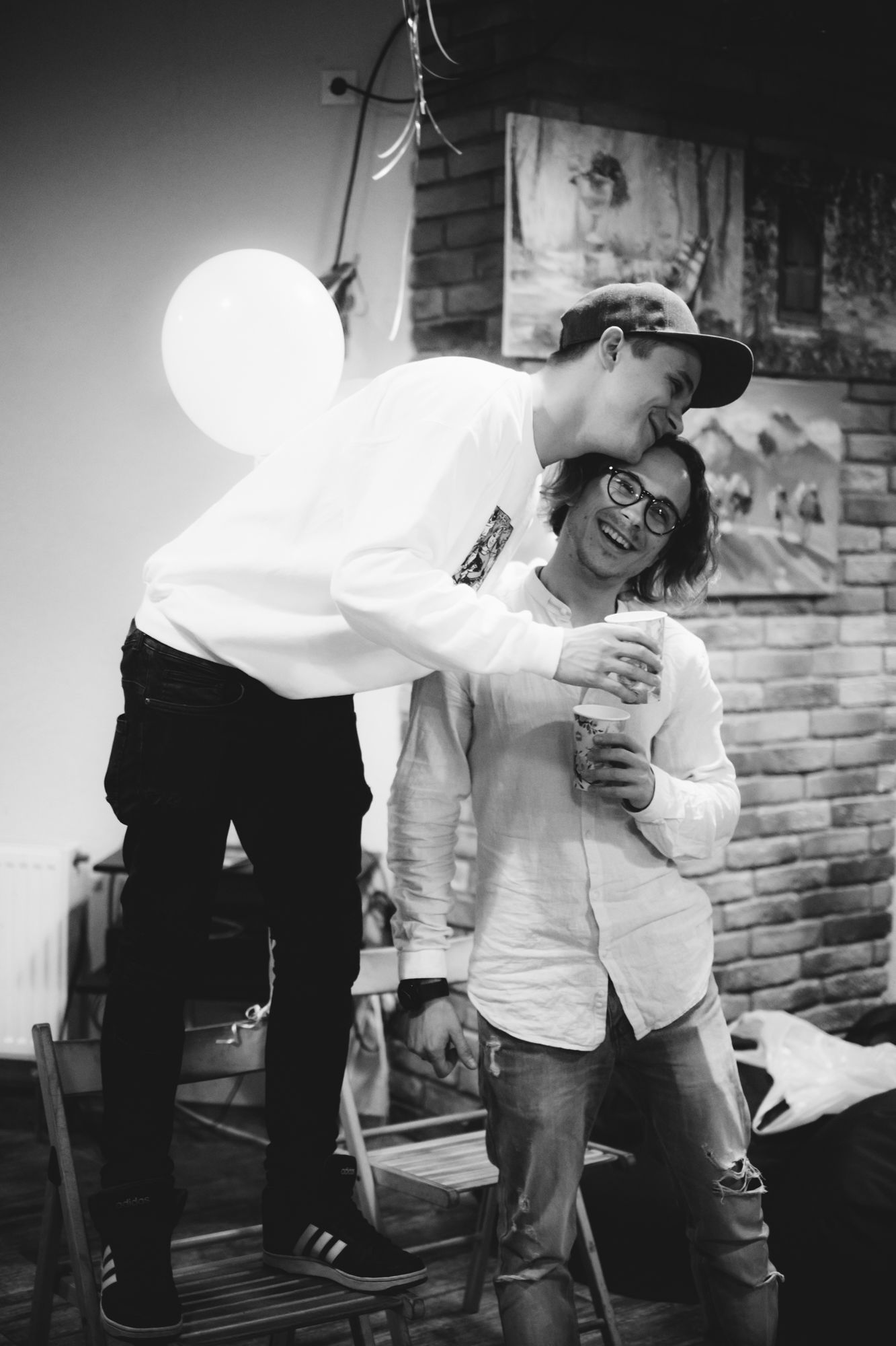 Привітати артистів прийшли численні друзі, серед яких ведучий Андрій Чорновол і соліст групи "Пара Нормальных" Артем Мех. Найзворушливішою частиною вечірки стали відеопривітання від батьків, бабусі, дідуся і старшого брата Дмитра. Рідні братів мешкають за кілька тисяч кілометрів від Києва і не змогли бути присутніми на ювілеї.
