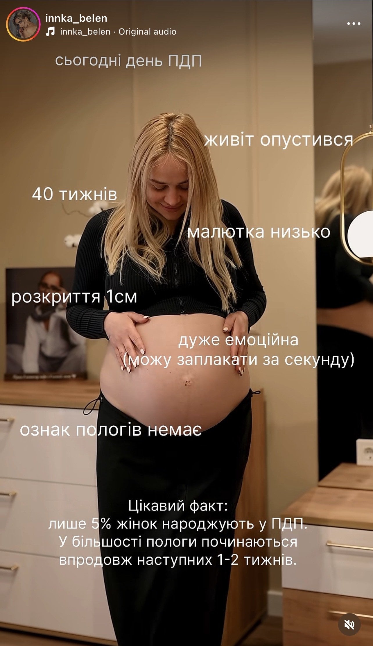 Цікавий факт: лише 5% жінок народжують у ПДП. У більшості пологи починаються впродовж наступних 1-2 тижнів», — написала Інна у відео.