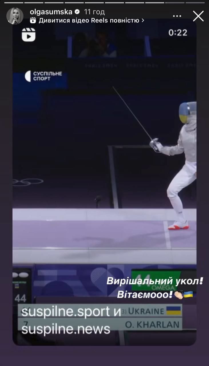 Зірка опублікувала на своїй сторінці в Instagram кадри з блискучою перемогою Ольги Харлан.