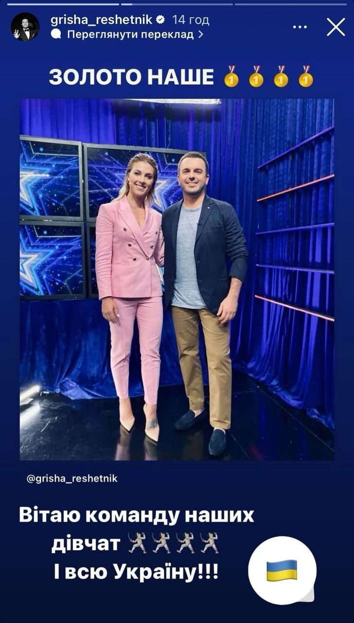 "Золото наше. Вітаю команду наших дівчат. І всю Україну! Незламна нація Героїв і Героїнь", - привітав шоумен з перемогою.