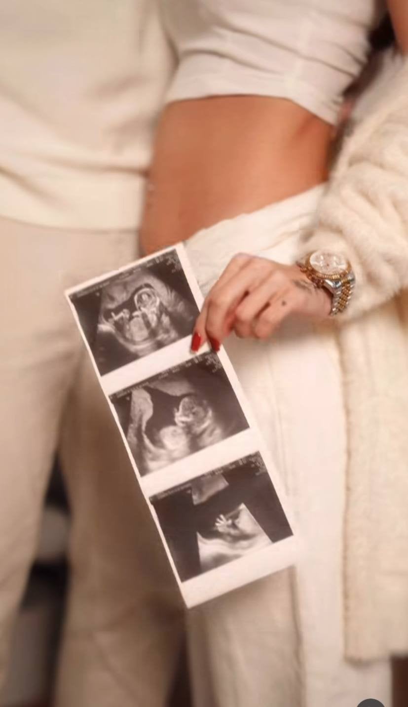 Радісною новиною подружжя поділилося в Instagram. Закохані опублікували короткий ролик, на якому позують на тлі ялинки. При цьому у Вікторії вже видніється ледь округлий животик. Також пара продемонструвала знімок УЗД маляти.