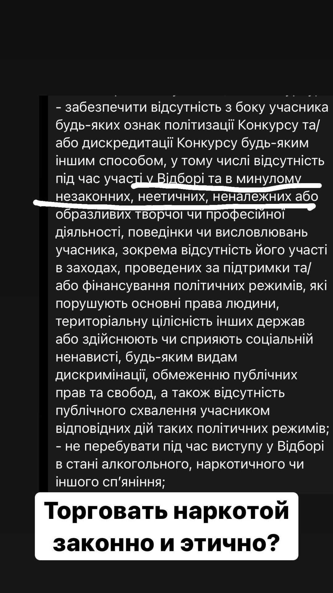 "Я жодним чином не хочу розганяти жодних конфліктів, зрада не зрада. Я для себе хочу зрозуміти, у контракті є пункт, який гурт KALUSH конкретно порушив і на це буцімто всі закрили очі", - додав Бардаш і запостив скрин з контракту.
