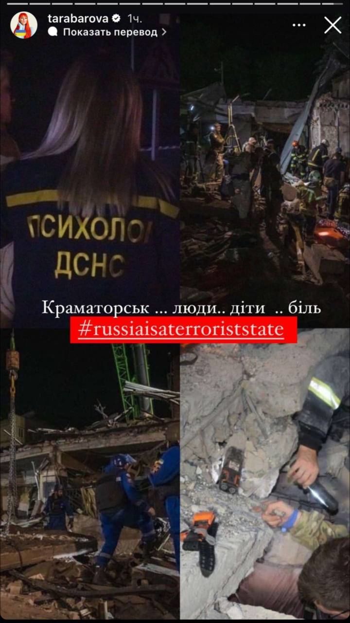Артистка показала наслідки влучання російської ракети по Краматорську. Виконавиця написала, що війну необхідно зупинити.